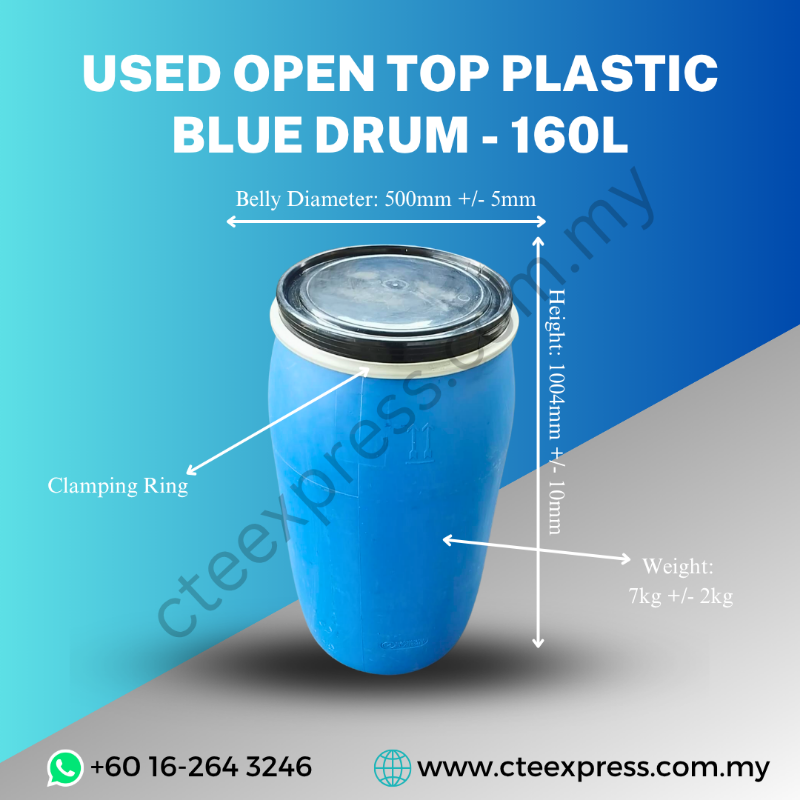 Pesan Dram Plastik Biru Terbuka Terpakai 160L anda hari ini dan nikmati penyelesaian storan yang praktikal dan serba boleh yang tahan lama!