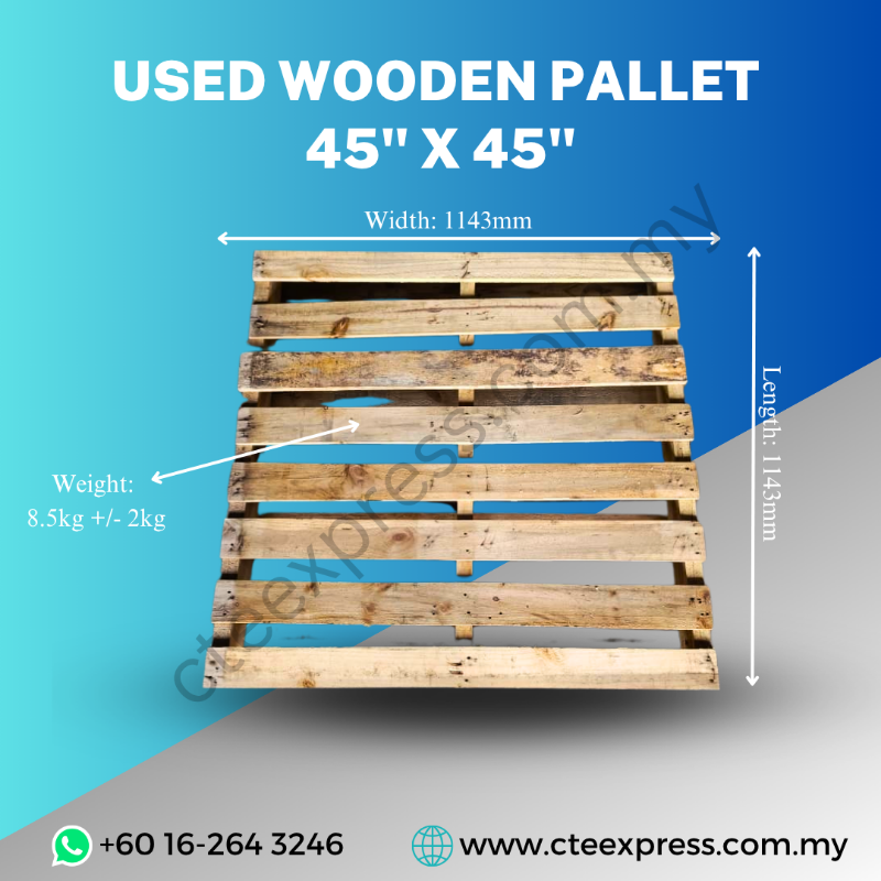 Mencari penyelesaian penyimpanan dan penghantaran yang berpatutan dan boleh dipercayai? Pallet Kayu Terpakai - 45" x 45" kami menawarkan keseimbangan sempurna antara ketahanan, mesra alam, dan kos efektif. Sesuai untuk perniagaan dalam pelbagai industri, pallet ini direka untuk aplikasi berat di gudang, runcit, logistik, dan pembuatan.